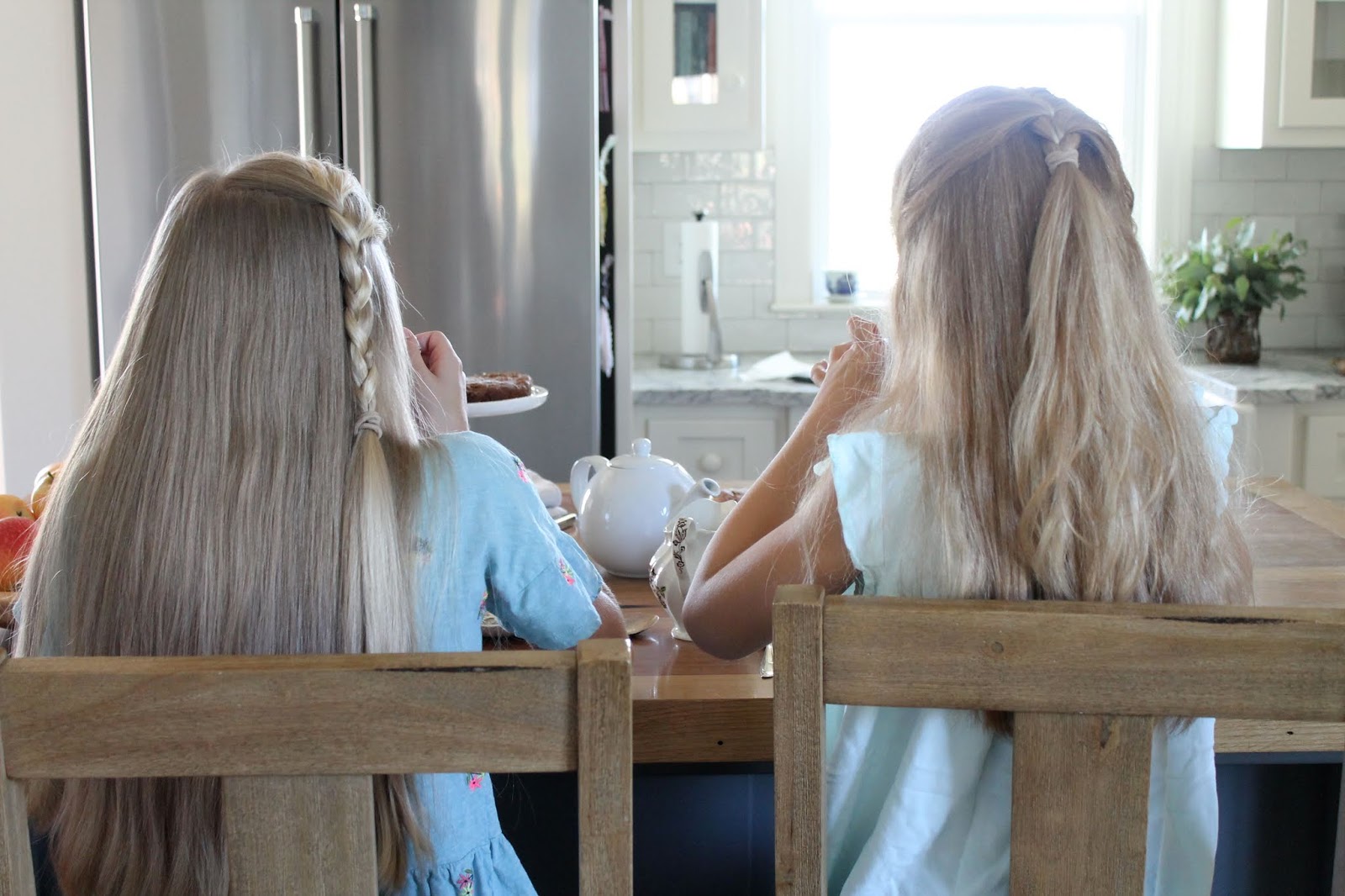 The girls obviously have favorite things to look forward to each season. During the fall season, they love our annual trip to the pumpkin patch, school activities with friends, the county fair, and so much more, but one of their favorite things we start back up in the fall is our little afternoon teas at home.